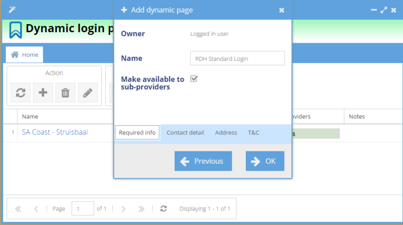 Click on your new login page in the Dynamic login pages window.