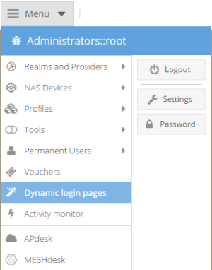 Click on the MENU button in the top left corner of the RADIUSdesk home page.