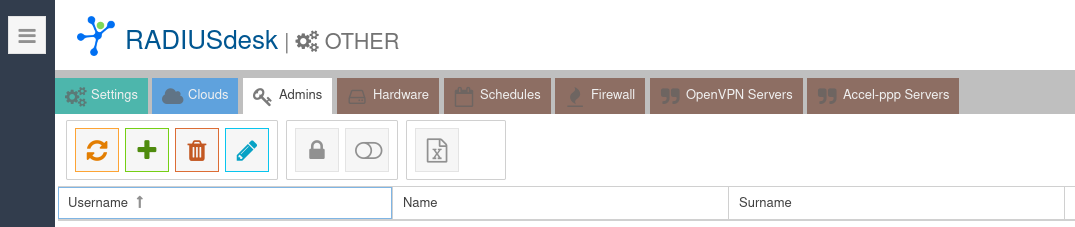 - If you are logged in as the root user, you will find an Admins applet under Other.