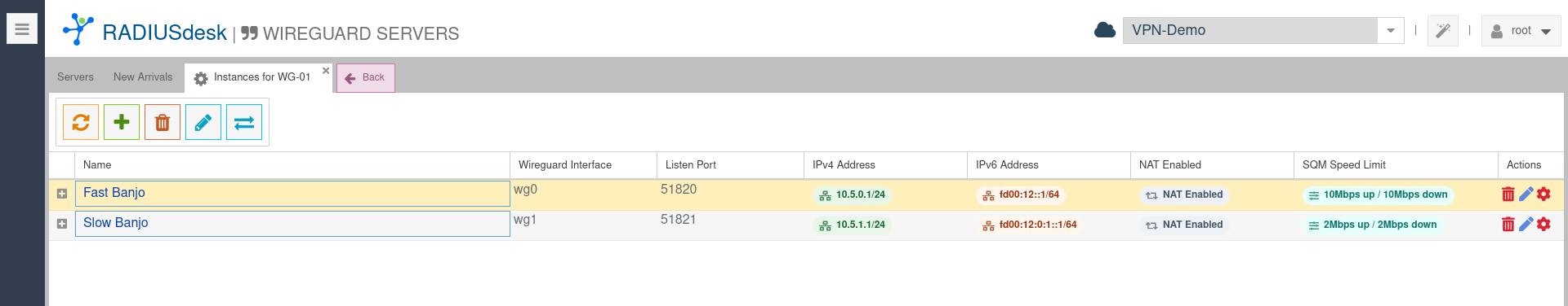 Each Wireguard server will have one or more Wireguard Instances associated with it.